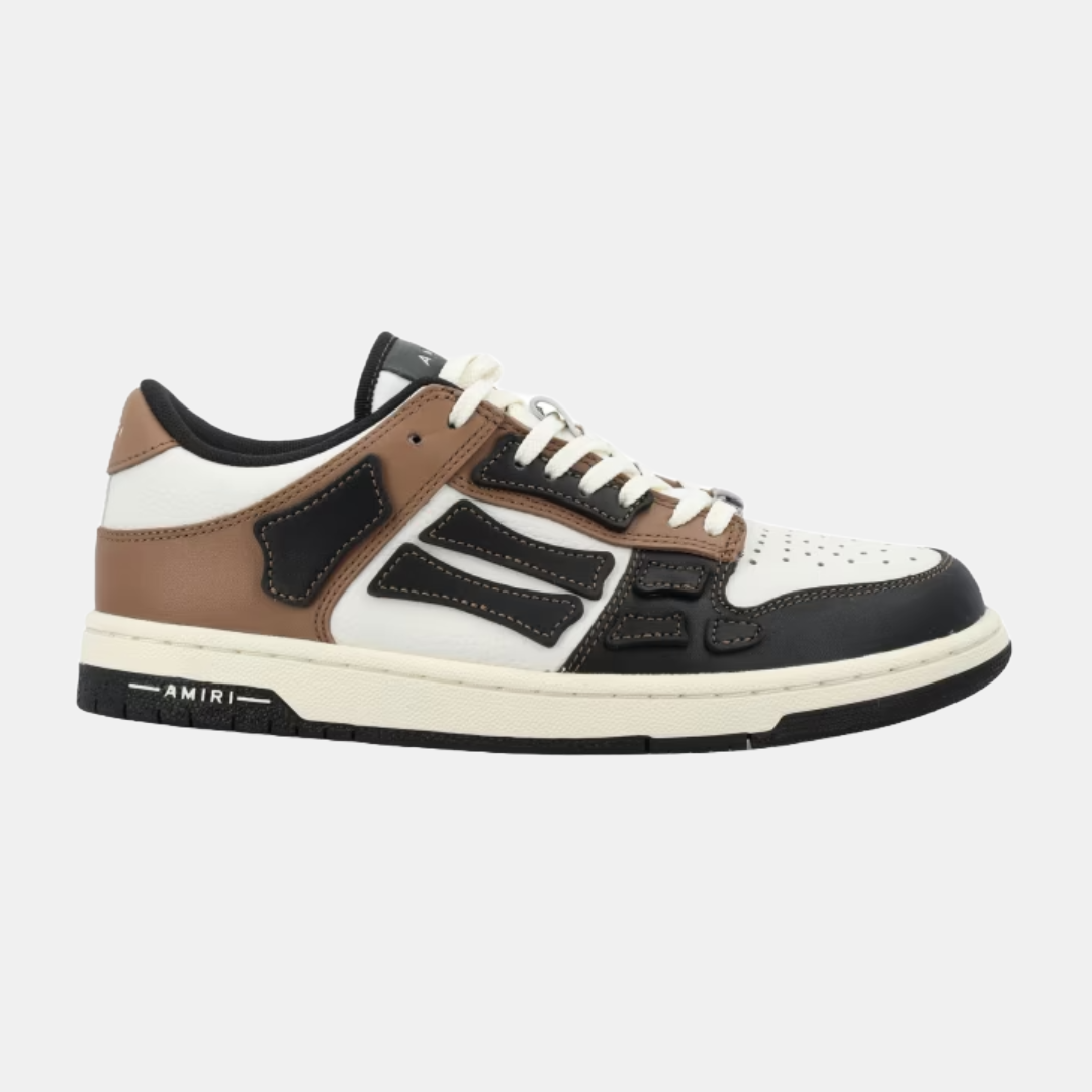 Las Amiri Skell Top Low Bicolor Brown son una de las zapatillas más icónicas de la marca, conocidas por su diseño audaz con apliques en forma de hueso que recorren los laterales. Fabricadas con cuero de alta calidad y detalles artesanales, estas zapatillas combinan el estilo urbano con un toque rebelde y distintivo. Perfectas para quienes buscan una declaración de estilo que no pase desapercibida, las Skel Low añaden un carácter único y vanguardista a cualquier outfit.