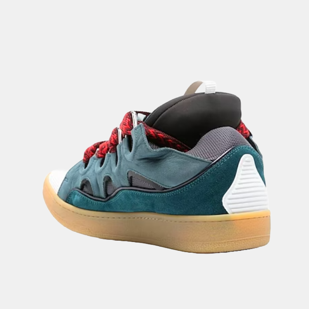 Las Lanvin Curb Bue son una mezcla atrevida de nostalgia de los años 90 y alta moda contemporánea, destacándose por su diseño voluminoso y llamativo. Estas zapatillas, confeccionadas con una combinación de cuero, gamuza y malla, ofrecen un look robusto y detallado que captura la esencia del streetwear. Sus cordones extragruesos y la icónica lengüeta oversized añaden un toque distintivo y juguetón, mientras que la suela gruesa asegura comodidad y soporte en cada paso. Perfectas para quienes buscan un calzado statement, las Lanvin Curb combinan lujo y un estilo desenfadado que no pasa desapercibido.