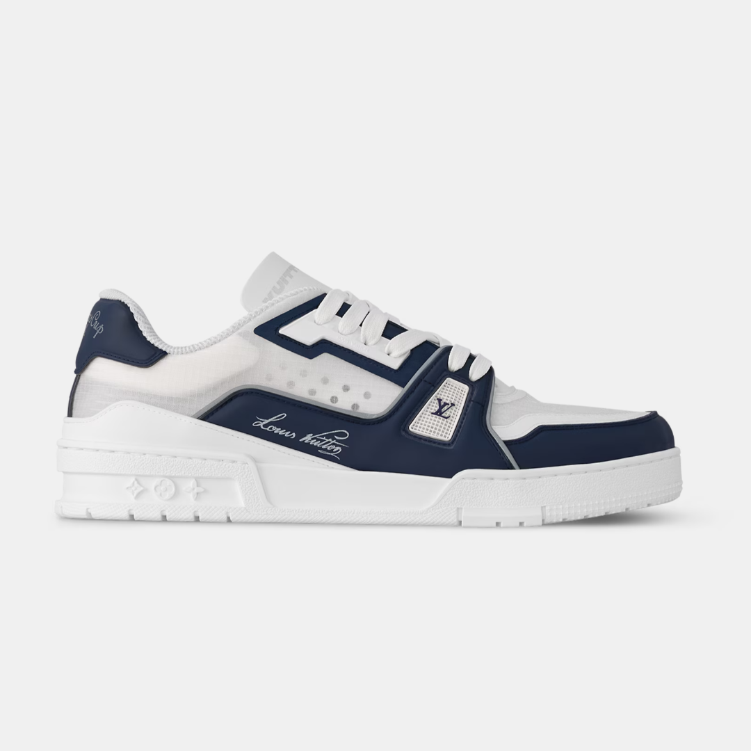 Las Louis Vuitton Trainer - Dark Blue son un icono del lujo contemporáneo, diseñadas por Virgil Abloh e inspiradas en el calzado de baloncesto retro. Estas zapatillas destacan por su construcción en cuero de alta calidad, combinada con detalles sofisticados como el monograma LV en relieve y una suela técnica con inserciones de gel para mayor confort. Cada par requiere horas de trabajo artesanal, reflejando la dedicación y la experiencia de la maison en cada detalle. Con su diseño audaz y una mezcla perfecta de rendimiento y estilo, las Louis Vuitton Trainer son la elección ideal para quienes buscan un calzado de alto impacto y distinción.